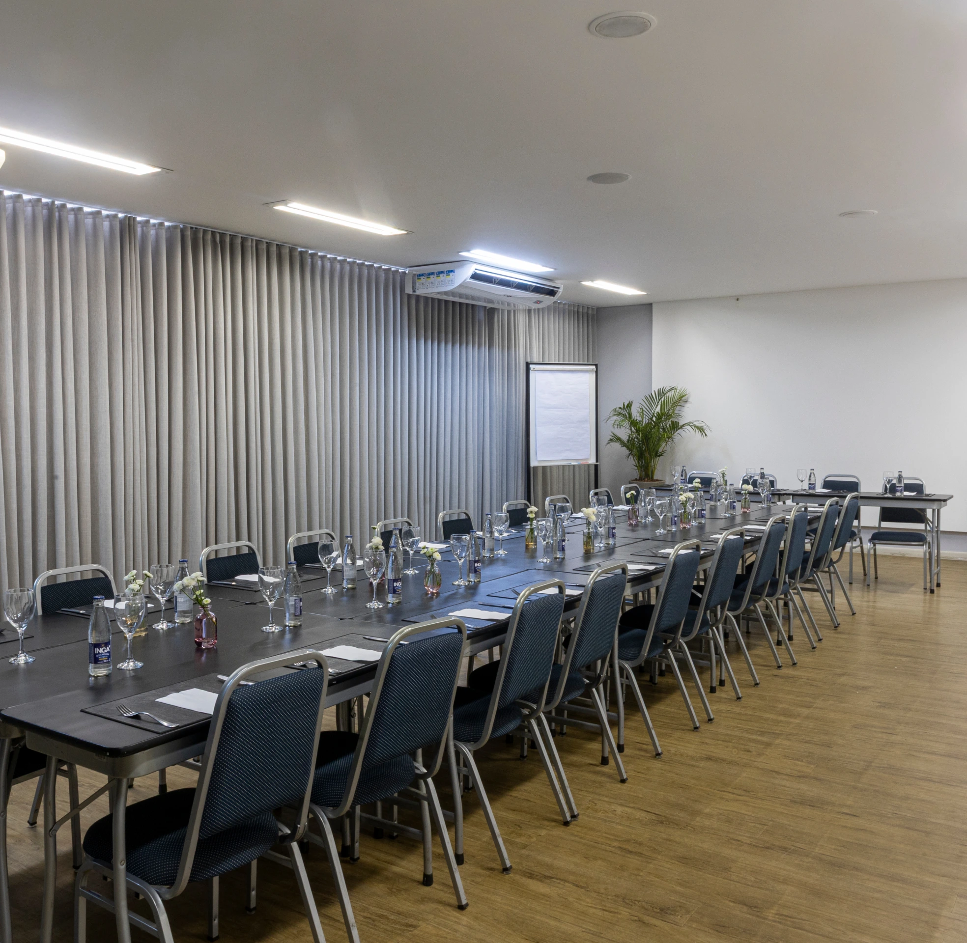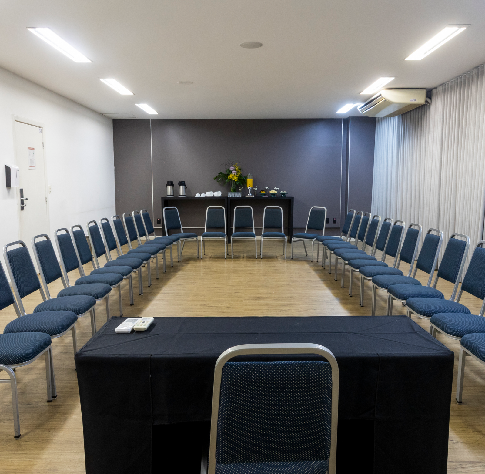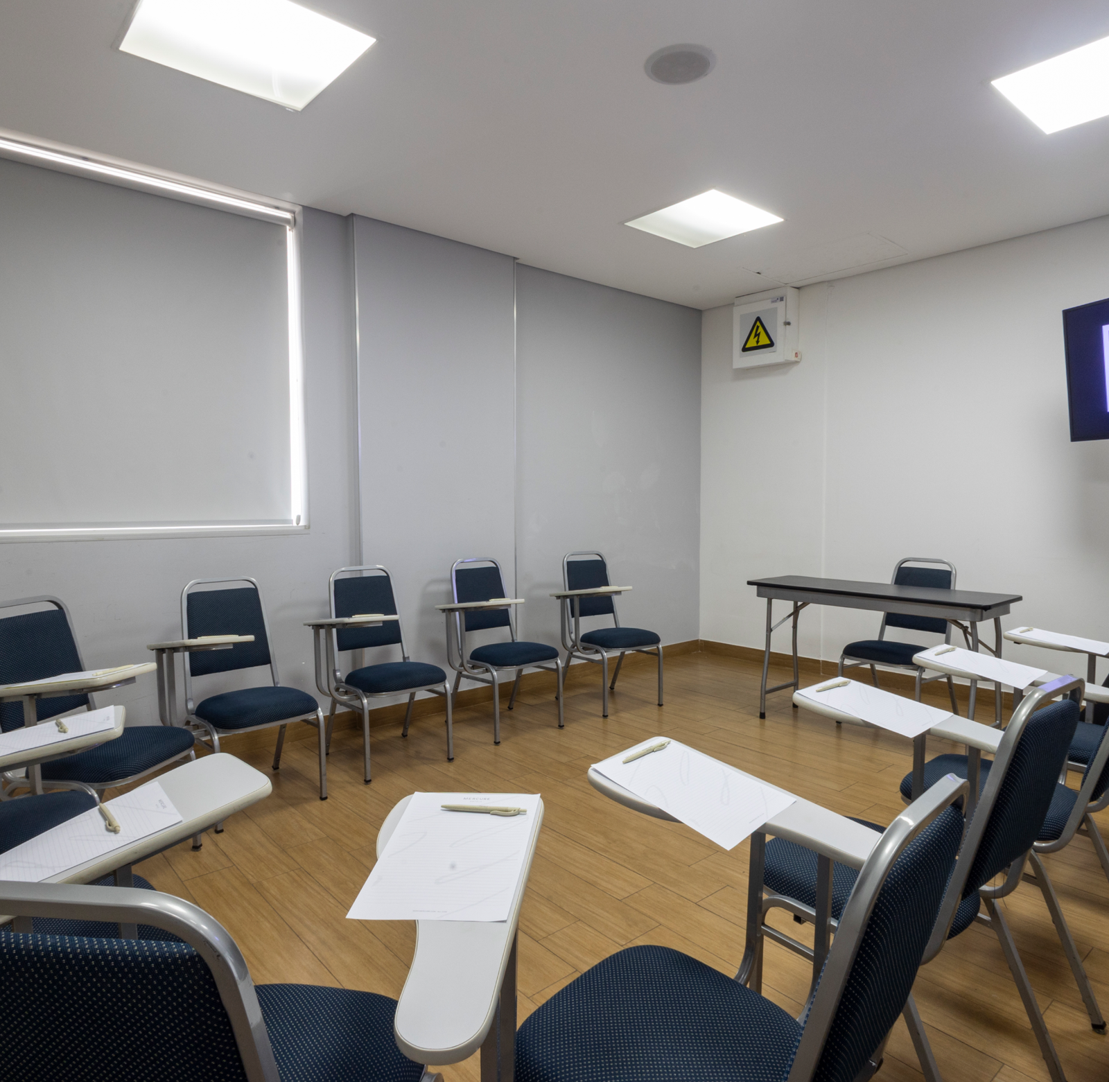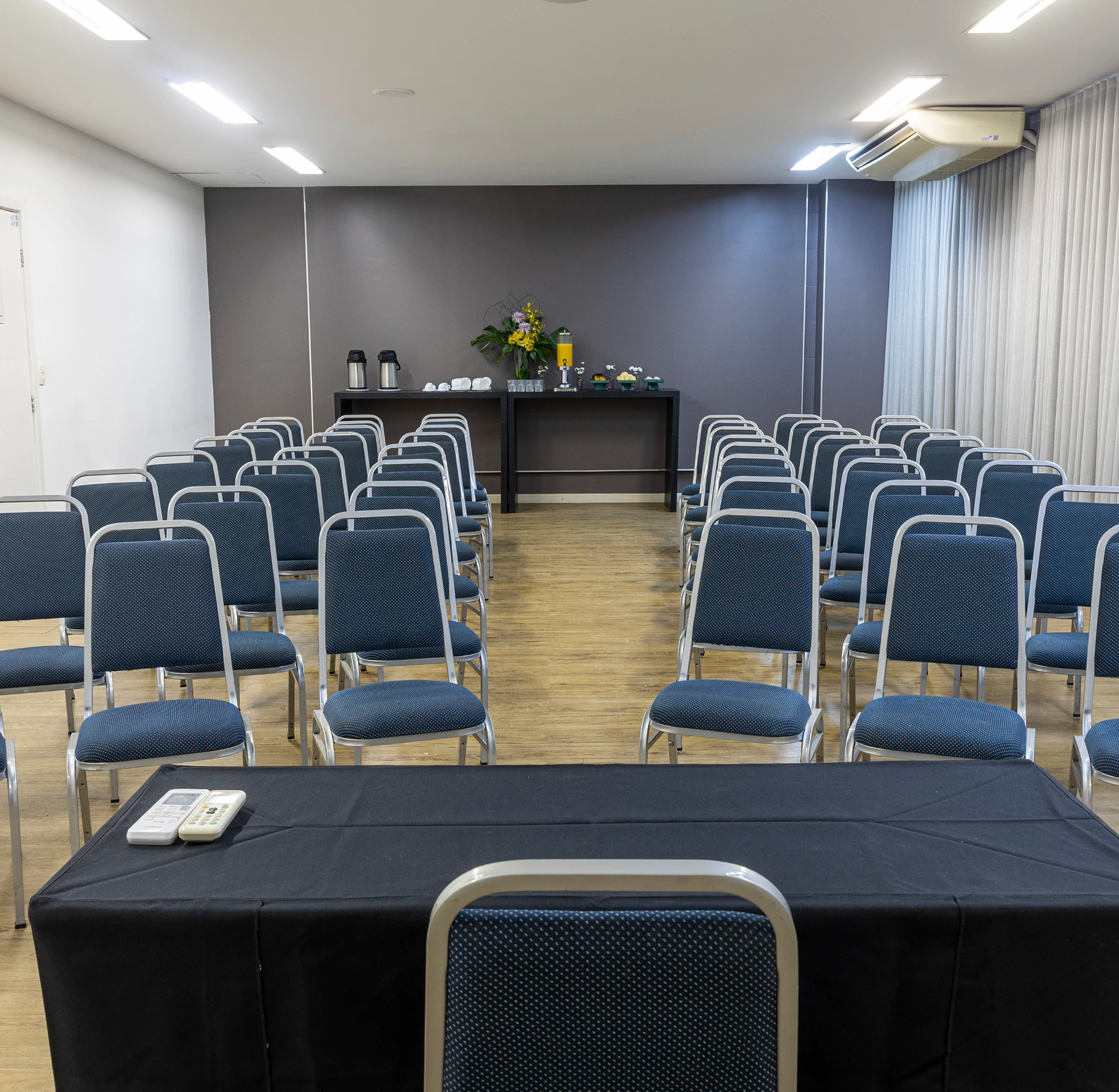 Sala ampla, com excelente acústica, além de contar com iluminação natural e artificial. Ideal para treinamentos, workshops, palestras e reuniões ampliadas.